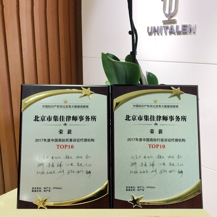 先ごろ、知産力とIPRdailyが、知産寶によるデータ提供のサポートを受けた「2017知的財産権訴訟実務(wù)ビッグデータ観察ランキング」を共同で正式に公表した。北京市集佳弁護士事務(wù)所は訴訟分野における総合力により、「2017年度中國商標(biāo)民事訴訟代理機構(gòu)TOP10」および「2017年度中國商標(biāo)行政訴訟代理機構(gòu)TOP10」に選出された。