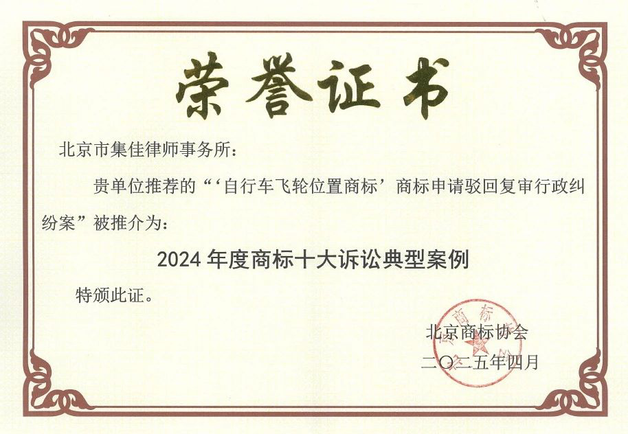 集佳代理“自行車飛輪位置商標”行政糾紛案入選北京商標協(xié)會年度十大訴訟典型案例