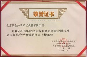 集佳榮獲2017~2018年度北京市優(yōu)秀專利代理機構(gòu)(領軍機構(gòu))稱號