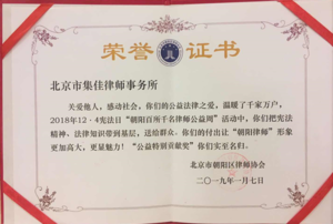 集佳律所榮獲北京市朝陽區(qū)律師協(xié)會“公益特別貢獻獎”稱號