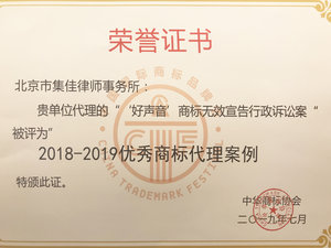集佳代理“好聲音”商標無效宣告行政案入選“優(yōu)秀商標代理案例”