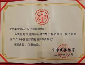 集佳喜獲“2018中國國際商標(biāo)品牌節(jié)貢獻(xiàn)獎(jiǎng)”