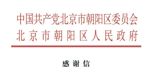 北京市朝陽(yáng)區(qū)委、區(qū)政府向集佳發(fā)來(lái)感謝信