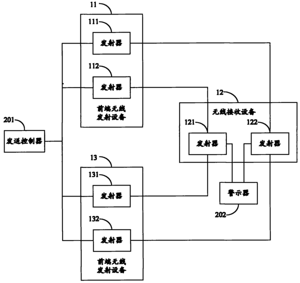 本實用新型實施例公開了無線安防報警系統(tǒng)和裝置。其中,無線安防報警系統(tǒng)包括前端無線發(fā)射設備和無線接收設備,前端無線發(fā)射設備包括多個在發(fā)生警情時發(fā)送報警信號的發(fā)射器,任一發(fā)射器所發(fā)送報警信號的頻率與其他發(fā)射器所發(fā)送報警信號的頻率處于不同頻段;無線接收設備包括與多個發(fā)射器一一對應的多個接收器??梢?,本實用新型實施例中任一發(fā)射器-接收器所工作的頻段與其他發(fā)射器-接收器所工作的頻段均不相同。當工作于某個頻段的接收器遭受同頻干擾或鄰頻干擾時,其他頻段的接收器還可與對應的發(fā)射器保持正常通訊,從而解決了現有的、只使用單一頻段的無線安防報警系統(tǒng)因受到同頻干擾或鄰頻干擾而導致的漏報警問題。 |