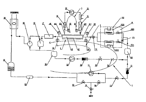 本發(fā)明涉及一種管內制冷劑含油蒸發(fā)/冷凝傳熱測試一體裝置及其測試方法,裝置的特征是包括通過管道順序連接的冷凝器、回收罐、動力泵、調節(jié)閥、制冷劑質量流量計、均勻調和槽、蒸發(fā)預熱/冷凝預熱并聯選擇通路、蒸發(fā)/冷凝測試段、加熱器、高效油分離器、冷凝器的制冷劑回路;通過管道順序連接的高效油分離器、貯油器、高壓油泵、潤滑油質量流量計、控制閥、均勻調和槽、蒸發(fā)預熱/冷凝預熱并聯選擇通路、制冷劑蒸發(fā)/冷凝測試段、加熱器、高效油分離器的潤滑油注油回路;以及通過管道順序連接的換熱器、水加熱器、水泵、水質量流量計的蒸發(fā)/冷凝測試段換熱回路??蛇M行不同制冷劑管內蒸發(fā)冷凝傳熱測試和制冷劑含油率對換熱管蒸發(fā)冷凝傳熱特性影響測試,方便、可靠。 |