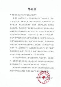 ![]() | 等待7年的勝訴 | 一封來自重慶鴿牌電線電纜有限公司的感謝信近日,集佳收到來自重慶鴿牌電線電纜有限公司的感謝信,第4524253號“鴿皇GE HUANG及圖”商標爭議及無效宣告案歷時7年,終于在集佳代理律師們的共同努力下畫上了一個圓滿的句號。信中,重慶鴿牌電線電纜有限公司對集佳律師們的專業(yè)水準和精致服務(wù)給予了高度的評價... |