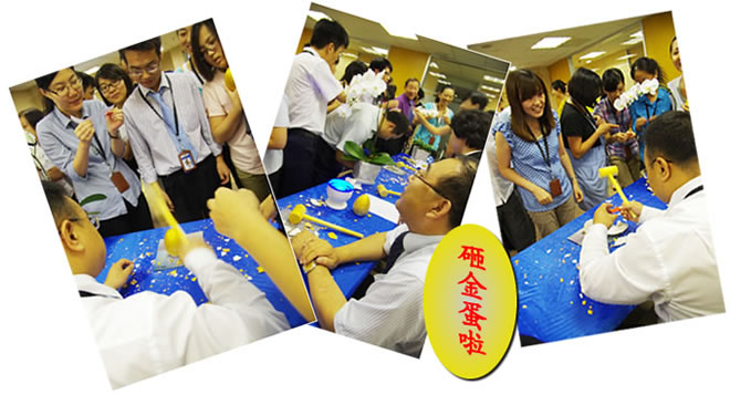 特別布置的活動主會場,同樣在藍色與白色的交融中,詮釋著節(jié)日的歡樂。而為慶典特別設(shè)計的“砸金蛋、贏大獎”活動,則充滿挑戰(zhàn)和趣味,吸引了眾多同事的響應(yīng)和參與——尋找金蛋的過程充滿了欣喜和快樂,金蛋里的問題讓我們重溫集佳成長歷程,而金蛋中的大獎,則帶給大家一份驚喜和幸運,共同分享集佳18周年慶典的喜悅?;顒蝇F(xiàn)場氣氛熱烈、高潮跌宕,同事們紛紛合影留念,定格這美好瞬間。