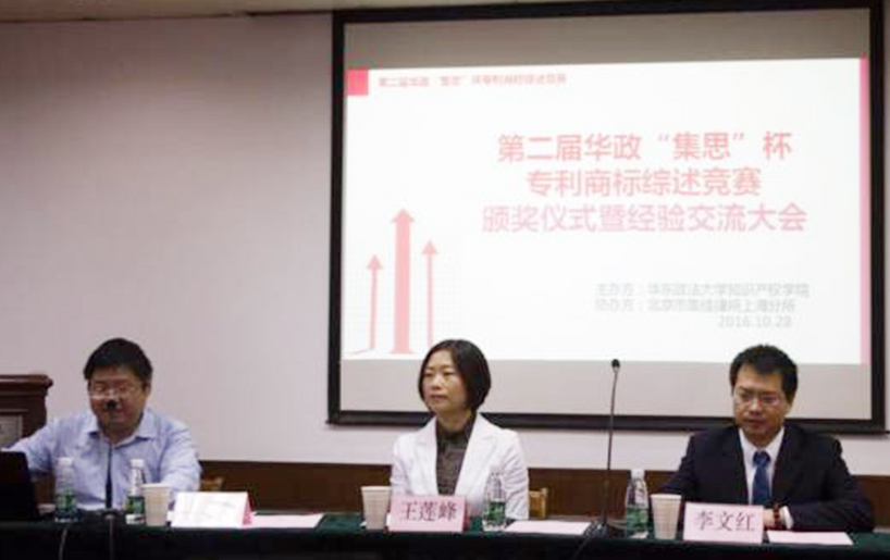由華東政法大學(xué)知識產(chǎn)權(quán)學(xué)院主辦、北京市集佳律師事務(wù)所上海分所提供支持的第二屆“集思”杯專利商標(biāo)綜述競賽圓滿落下帷幕,2016年10月28日,競賽頒獎(jiǎng)儀式暨經(jīng)驗(yàn)交流大會在華東政法大學(xué)舉行。