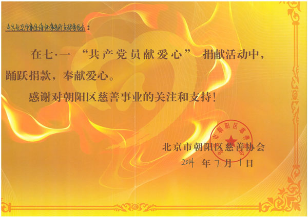 2014年是中國(guó)共產(chǎn)黨成立93周年,是全面貫徹黨的十八屆三中全會(huì)精神、深入開(kāi)展黨的群眾路線(xiàn)教育實(shí)踐活動(dòng)的重要一年。為充分發(fā)揮共產(chǎn)黨員的先鋒模范作用,集佳律師事務(wù)所積極響應(yīng)朝陽(yáng)區(qū)律協(xié)黨委開(kāi)展“共產(chǎn)黨員獻(xiàn)愛(ài)心”捐款活動(dòng)的號(hào)召,面向全所黨員律師、入黨積極分子組織愛(ài)心捐獻(xiàn)活動(dòng)。