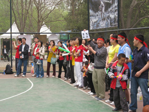 場(chǎng)外,啦啦隊(duì)員們鼓足了勁兒為球員加油,每一次進(jìn)球都讓他們興奮不已,頭上的誓師小布條,手上高舉的助威標(biāo)語(yǔ)以及大家的齊聲吶喊,都使場(chǎng)上的球員們動(dòng)力十足。