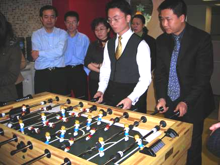 在大家積極配合和充分準備下,本次大賽完美開局。感謝公司領(lǐng)導(dǎo),感謝每一位關(guān)心支持本次大賽的伙伴們。在剛剛走過的2006年,集佳又取得了新的成績,有了更大的發(fā)展,這離不開廣大員工的辛勤工作。公司領(lǐng)導(dǎo)為了減輕員工的工作壓力,增加了桌上足球運動設(shè)備,這為廣大員工在辛勤工作的同時提供了很好的放松運動,勞逸結(jié)合。相信隨著本次大賽的成功舉辦,會有越來越多的同事參與到這個項目中來,也會有越來越多的同事為集佳貢獻更大的力量。