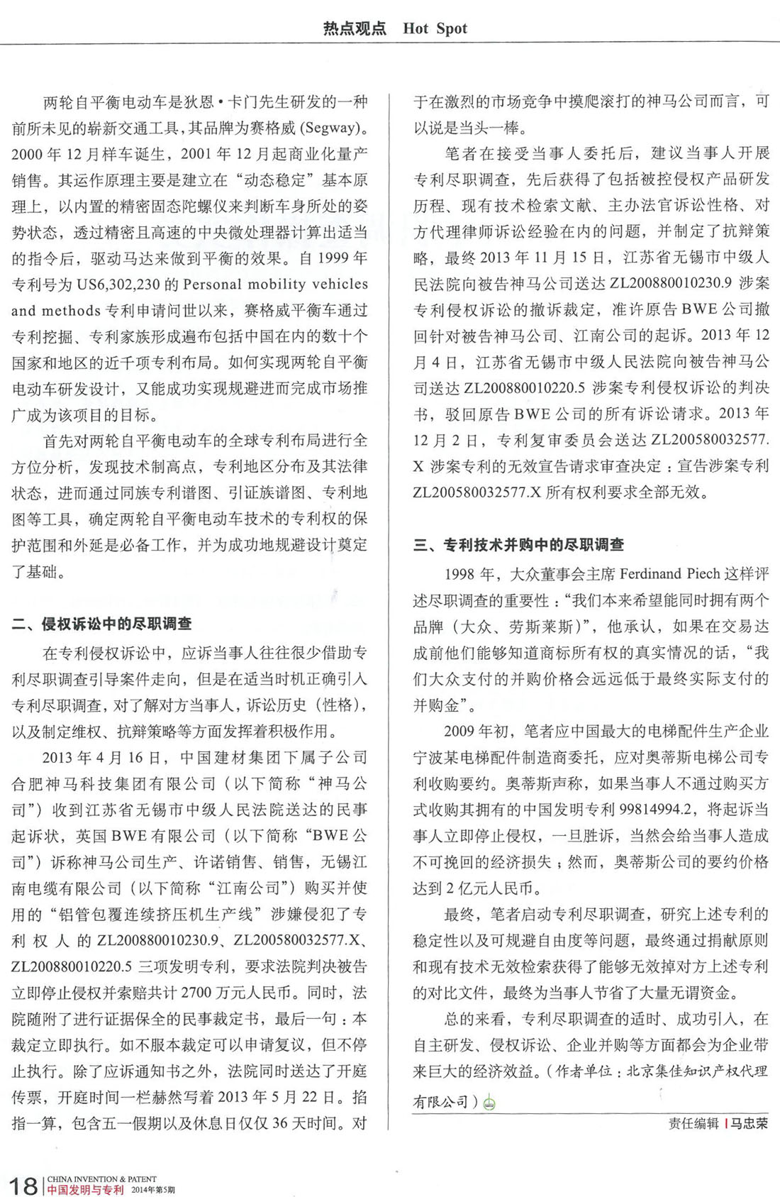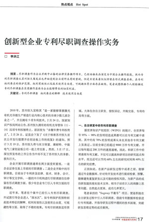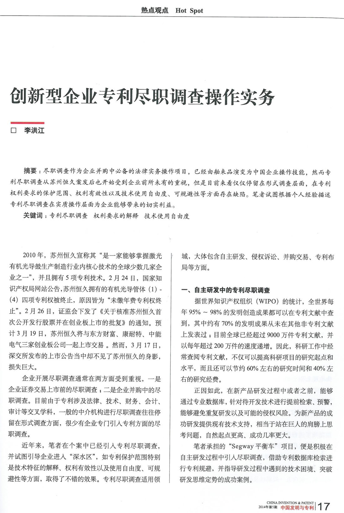 集佳律師撰文《創(chuàng)新型企業(yè)專利盡職調(diào)查操作實務》被《中國發(fā)明與專利》發(fā)表
