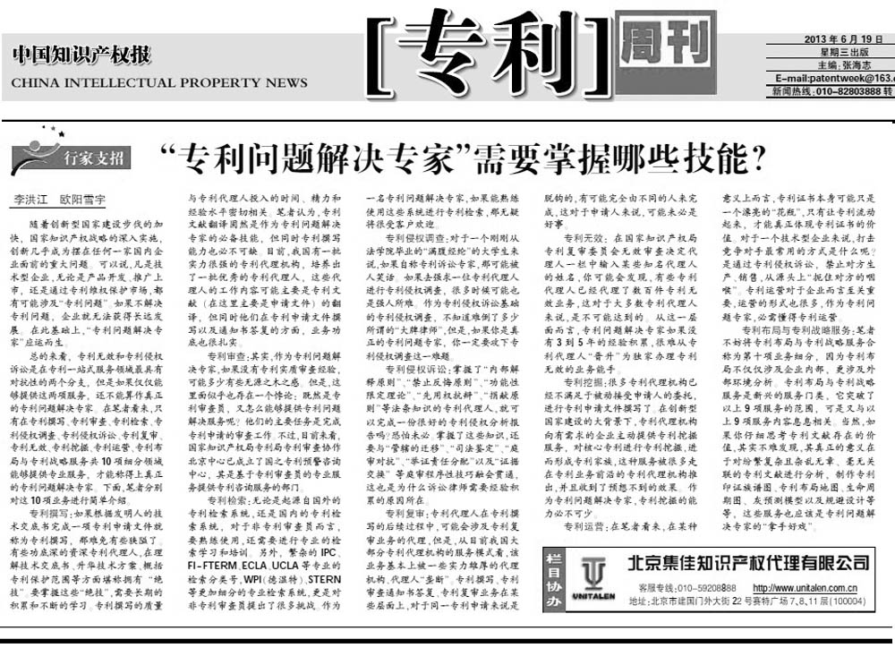 《中國(guó)知識(shí)產(chǎn)權(quán)報(bào)》:“專利問(wèn)題解決專家”需要掌握哪些技能?