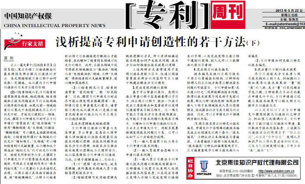 《中國知識產(chǎn)權(quán)報》:淺析提高專利申請創(chuàng)造性的若干方法
