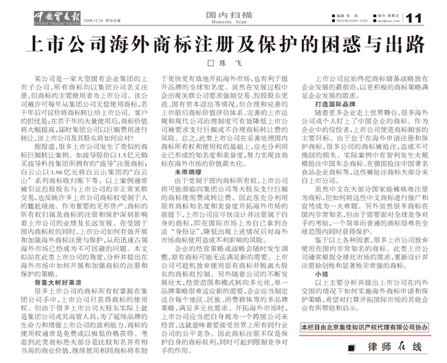 《中國(guó)貿(mào)易報(bào)》:上市公司海外商標(biāo)注冊(cè)及保護(hù)的困惑與出路