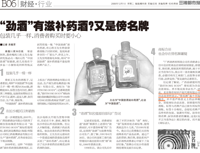《三湘都市報(bào)》:“勁酒”有滋補(bǔ)藥酒?又是傍名牌