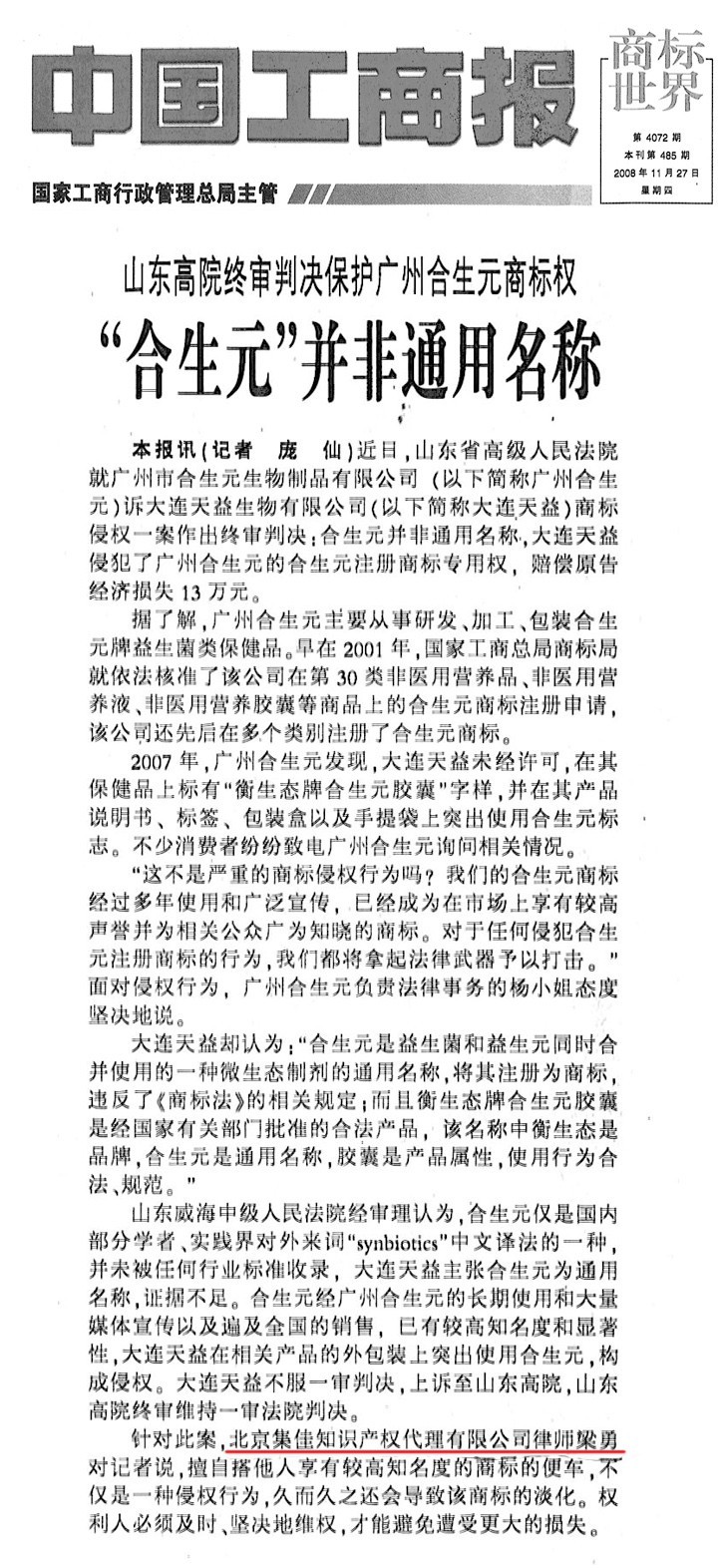 《中國工商報(bào)》:“合生元”并非通用名稱