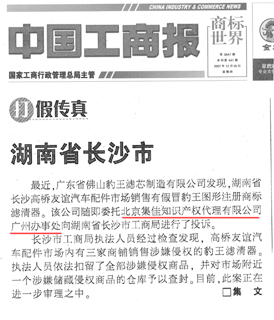 《中國工商報(bào)》:打假傳真:豹王湖南打假