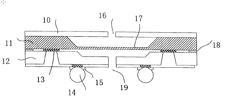 對于區(qū)別(4),對比文件1圖1(參見以下附圖II)已經(jīng)公開了:差壓的第一壓力通過底座圓片12中心的壓力入口19,作用在應(yīng)變薄膜17上,差壓的第二壓力通過位于玻璃帽子圓片11中心的入口16作用在應(yīng)變薄膜17,壓力傳感器輸出為這兩個壓力之差。即對比文件1已經(jīng)公開了:由入口19進(jìn)入的腔體可作為由入口16進(jìn)入的腔體的參考壓力腔。
