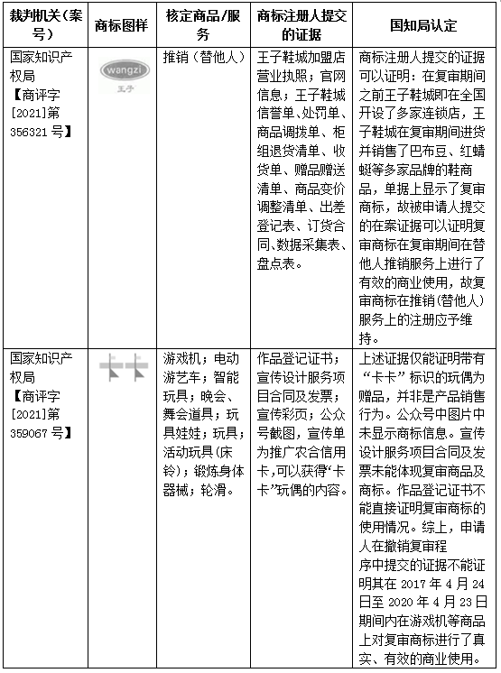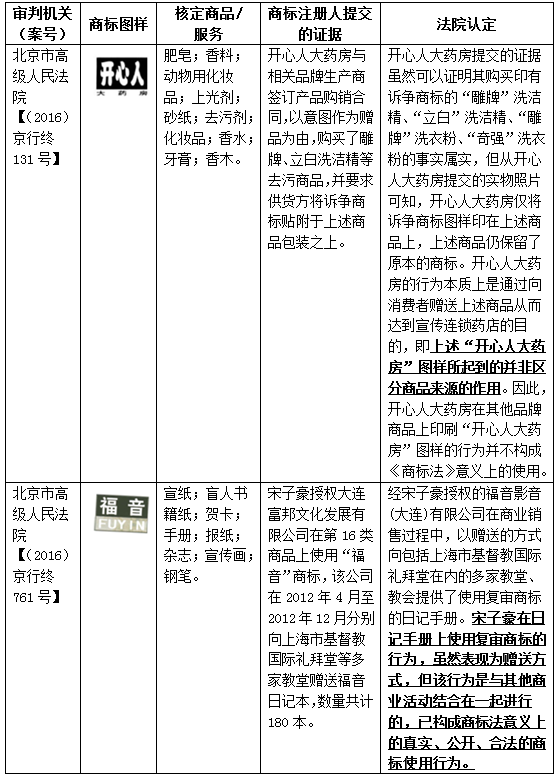 既然國(guó)知局刪除了上述規(guī)定,說(shuō)明將商標(biāo)使用在“贈(zèng)品”上是否構(gòu)成商標(biāo)法意義上的商標(biāo)使用,就需要個(gè)案認(rèn)定。當(dāng)前國(guó)知局對(duì)“贈(zèng)品”的裁判標(biāo)準(zhǔn)可以通過(guò)以下案例窺見一斑: