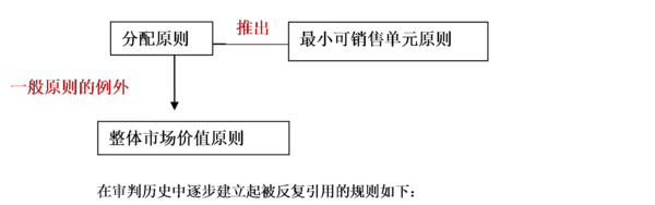 美國在相關的判例中確立了一套相應的規(guī)則。早在1953年,美國最高法院便在判決中提及,不考量專利是否涵蓋整個機器或是機器的改良而用相同規(guī)則來計算損害賠償,是個很嚴重的錯誤。至1984年的Garretson v. Clark案,這一做法進一步確立,即:在計算合理的許可費時,不應該以侵權產品的總價作為計算基礎,如果專利只占了產品或服務的一小部分,法院應該以專利所涉及的產品利益部分作為判決基礎,此之謂“分配原則”。