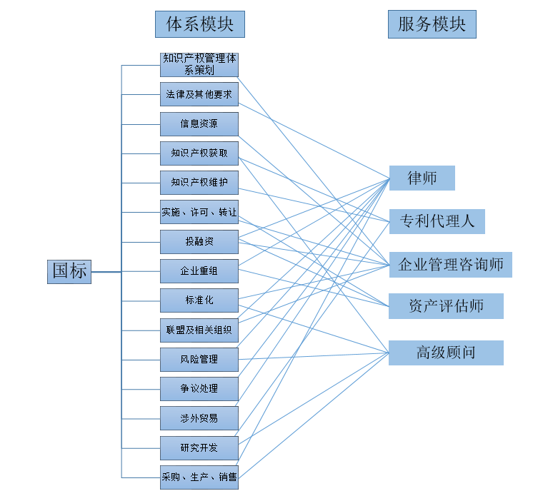 第一種鑒于其特殊情況,雖然市場占比較高,本文不做討論,而第二種情況,企業(yè)和咨詢機(jī)構(gòu)在構(gòu)建體系過程中,人力和物力量投入最大的三個模塊分別是管理現(xiàn)狀診斷、構(gòu)建知識產(chǎn)權(quán)管理體系、培訓(xùn)和運行,涉及到的服務(wù)人員有咨詢師、律師、專利代理人、資產(chǎn)評估師。而培訓(xùn)和運行模塊中的培訓(xùn)模塊,包括管理培訓(xùn)子模塊9個課時,知識產(chǎn)權(quán)基礎(chǔ)子模塊3個課時,專利維護(hù)子模塊1個課時、專利撰寫子模塊2個課時,專利保護(hù)和信息利用子模塊3個課時,知識產(chǎn)權(quán)運營子模塊1個課時,知識產(chǎn)權(quán)保密管理子模塊1個課時,知識產(chǎn)權(quán)風(fēng)險規(guī)避子模塊1個課時。