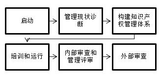 目前貫標(biāo)輔導(dǎo)咨詢,市場份額占比較大的有兩種模式:一種是基于咨詢機(jī)構(gòu)提供的一套符合國家標(biāo)準(zhǔn)的模板,企業(yè)根據(jù)知識產(chǎn)權(quán)的自身運作形成記錄文件后爭取第三方認(rèn)可;另一種,是在咨詢機(jī)構(gòu)的全程輔導(dǎo)下,完成啟動、管理現(xiàn)狀診斷、構(gòu)建知識產(chǎn)權(quán)管理體系、培訓(xùn)和運行、內(nèi)部審查和管理評審、外部審查6個模塊(見圖1),系統(tǒng)的構(gòu)建知識產(chǎn)權(quán)管理體系。