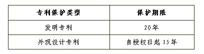 美國(guó)專(zhuān)利保護(hù)類(lèi)型及保護(hù)期限如表1-2-1所示。