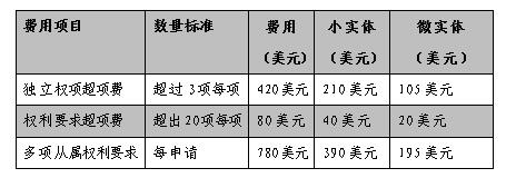 表1-2-5 美國(guó)專(zhuān)利申請(qǐng)超頁(yè)超項(xiàng)收費(fèi)明細(xì)表