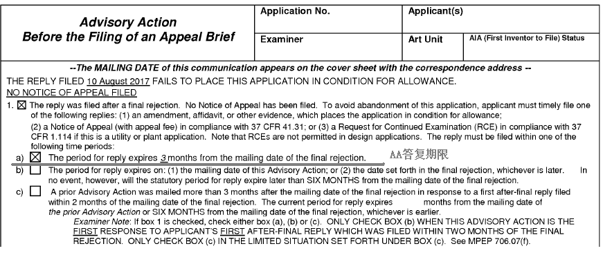 1.3.2.4 Advisory Action傾向性意見(jiàn)(簡(jiǎn)稱(chēng)AA)