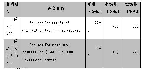 表1-2-7 美國(guó)RCE程序收費(fèi)表