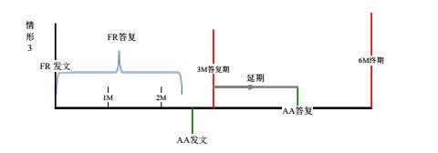 (3)情形3、申請(qǐng)人于FR發(fā)文日起的3個(gè)月內(nèi)完成答復(fù),審查員在3個(gè)月答復(fù)期內(nèi)發(fā)出AA, 則AA的延期費(fèi)自3個(gè)月官方期限起算。