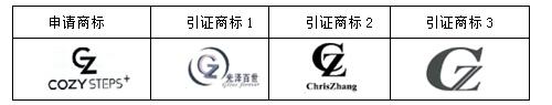 焦作隆豐皮草企業(yè)有限公司,是世界上最大的羊裘皮鞣制企業(yè),是業(yè)界公認的舒適鞋履專家,也是世界上少數(shù)幾家融通從傳統(tǒng)到現(xiàn)代科技并實現(xiàn)完全資源整合的品牌之一。于2015年11月12日申請在25類的“服裝;靴;鞋墊;鞋底;鞋;帽;襪;手套(服裝);圍巾;皮帶(服飾用)”商品上注冊第18313373號“CZ COZYSTEPS+”商標,被商標局予以駁回??紤]到申請商標既是申請人長期使用的商標,所申請使用的類別也均是申請人的核心業(yè)務,申請人于2016年9月7日向商評委提出駁回復審申請。最終,2017年4月23日收到商評委下發(fā)的《關于第18313373號“CZ COZYSTEPS+”商標駁回復審決定書》,商評委認為:申請商標與據(jù)以駁回的引證商標在字母構成、呼叫上尚可區(qū)分,未構成近似商標,準予申請商標在復審商品上予以初步審定。