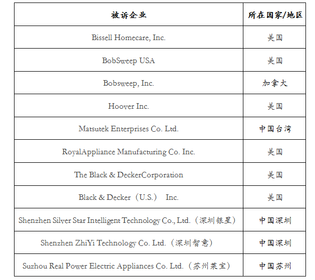 2017年4月18日,美國掃地機器人公司iRobot先后向美國國際貿(mào)易委員會(ITC)提起了“337調(diào)查”申請,指控包括3家中國公司在內(nèi)的共11家企業(yè)侵犯了其在美的6項專利中一項或多項權(quán)利要求,并要求有限排除令(limited exclusion order)及停止侵權(quán)(cease and desist order)。