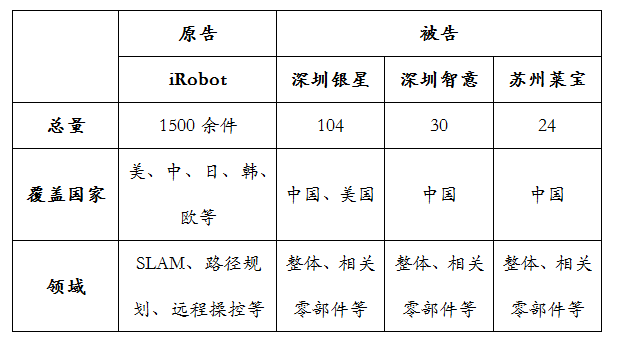 將本案涉及的原告及被告(中國企業(yè))的專利情況進行分析,不難看出雙方實力的巨大差距,iRobot作為全球第一家上市的家用機器人研發(fā)、生產(chǎn)企業(yè),其在機器人領域進行了多年的深耕,積累了大量的專利申請,通過較為嚴密的專利組合,形成了較為完善的專利布局。