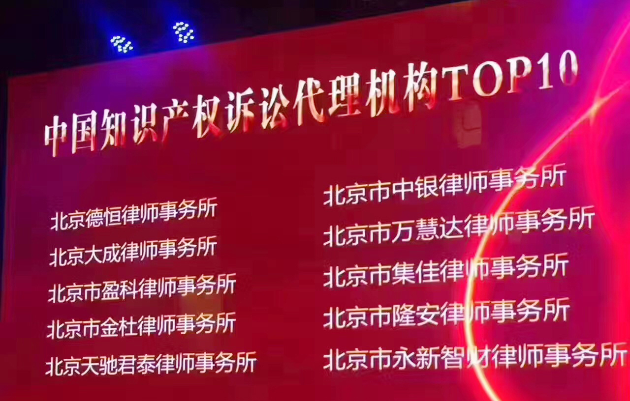 2017年6月23日,備受關(guān)注的知產(chǎn)寶“2016年度中國十佳知識產(chǎn)權(quán)訴訟代理機(jī)構(gòu)榜單發(fā)布會”在北京隆重舉行,集佳訴訟團(tuán)隊?wèi){借穩(wěn)健的綜合實力,入選“中國知識產(chǎn)權(quán)訴訟代理機(jī)構(gòu)”TOP10和“中國商標(biāo)行政訴訟代理機(jī)構(gòu)”TOP10榜單。國內(nèi)知識產(chǎn)權(quán)知名法律服務(wù)機(jī)構(gòu),近百位國內(nèi)外大中型企業(yè)代表,以及36家知名媒體齊聚一堂,共同見證了榜單發(fā)布情況