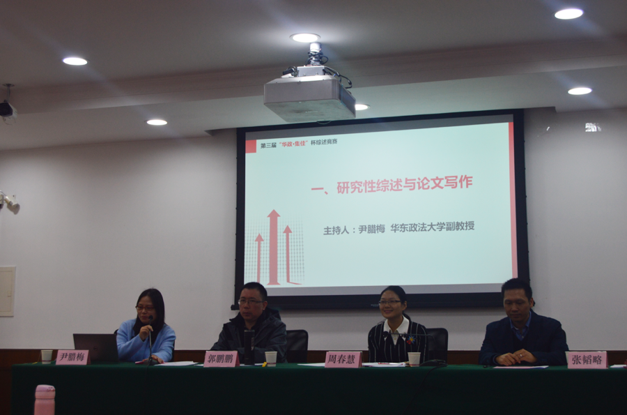 交流環(huán)節(jié)分為兩部分,第一部分主題為“研究性綜述與論文寫(xiě)作”,由尹臘梅副教授擔(dān)任主持。同濟(jì)大學(xué)張韜略副教授、《電子知識(shí)產(chǎn)權(quán)》周春慧編輯與南京理工大學(xué)郭鵬鵬副教授紛紛結(jié)合自己學(xué)術(shù)研究與工作經(jīng)歷,闡明了綜述性文章寫(xiě)作的重要性,并分享自己的撰寫(xiě)經(jīng)驗(yàn)與心得。第二部分主題為“綜述寫(xiě)作經(jīng)驗(yàn)分享”,由華東政法大學(xué)研究生李旭穎擔(dān)任主持。中南財(cái)經(jīng)政法大學(xué)李安同學(xué)、上海交通大學(xué)張斯瑋同學(xué)、華東政法大學(xué)姚藝同學(xué)、華東政法大學(xué)李若源同學(xué)結(jié)合自己的獲獎(jiǎng)綜述作品,對(duì)撰寫(xiě)過(guò)程中的心得經(jīng)驗(yàn)進(jìn)行了分享。