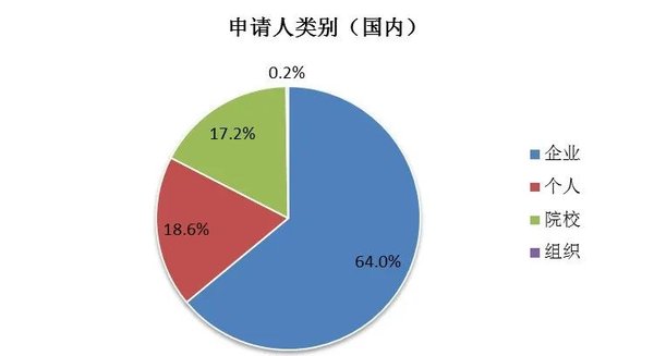 分類別看,如圖4,企業(yè)占據(jù)著該領(lǐng)域技術(shù)創(chuàng)新的主導(dǎo)地位(64.0%),而院校和個(gè)人申請(qǐng)人的體量較少且相當(dāng)(均為18%左右)。與這種分布不同,在圖3中,前二十位申請(qǐng)人中有11個(gè)院校、8個(gè)公司和1個(gè)個(gè)人,前十位申請(qǐng)人中則有7個(gè)院校和3個(gè)公司??芍邢薜脑盒X暙I(xiàn)了一部分的申請(qǐng)量,而申請(qǐng)量的大部分則分布在廣大的企業(yè)中。結(jié)合圖3,在企業(yè)類別中,以中國石油化工股份有限公司(111件)、荊門市格林美新材料有限公司(96件)和中國恩菲工程技術(shù)有限公司(94件)的申請(qǐng)量為多,但是同時(shí)也看出,企業(yè)之間的申請(qǐng)量差距并不大,進(jìn)一步表明固廢領(lǐng)域的技術(shù)創(chuàng)新在申請(qǐng)人維度上分布地比較分散。