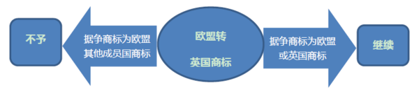 小結:對于轉化后的英國商標,若據(jù)爭商標是英國或者歐盟商標的,則案件繼續(xù)審理;若基于其他成員國的在先權利的,則將不予審理。此外,對于基于英國商標提出的歐盟異議和無效,歐盟將不予審理。