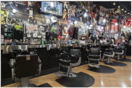 商標描述:該商標包括一家理發(fā)店的內(nèi)部設計,包括金屬籠中的蒸氣鎖燈,帶裸露燈泡的吊燈,工具箱,帶有切入口和切出口的不銹鋼工作臺面,垂直的墻面招牌和展示架,音樂主題海報展示墻。虛線所示的特征不作為商標的一部分,僅用于顯示這些特征的位置。