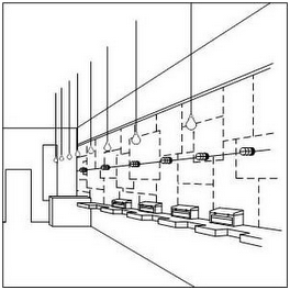 如提交店面外觀和內(nèi)部裝潢的立體商標申請,可通過在圖片中表明虛實線,同時通過商標描述告知“虛線僅表示店面形狀的示例,并不構成商標的一部分”,以表明要求受該立體商標保護的部分僅為以下圖片中的實線,如以下示例2和示例3所示。