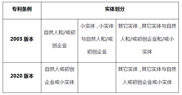 ?。?)新修訂條例取消了現(xiàn)行的自然人/初創(chuàng)企業(yè)、小實體和其它三種分類方式,不再將小實體進行單獨分類,取而代之的是將申請人的認定分為如下兩種: