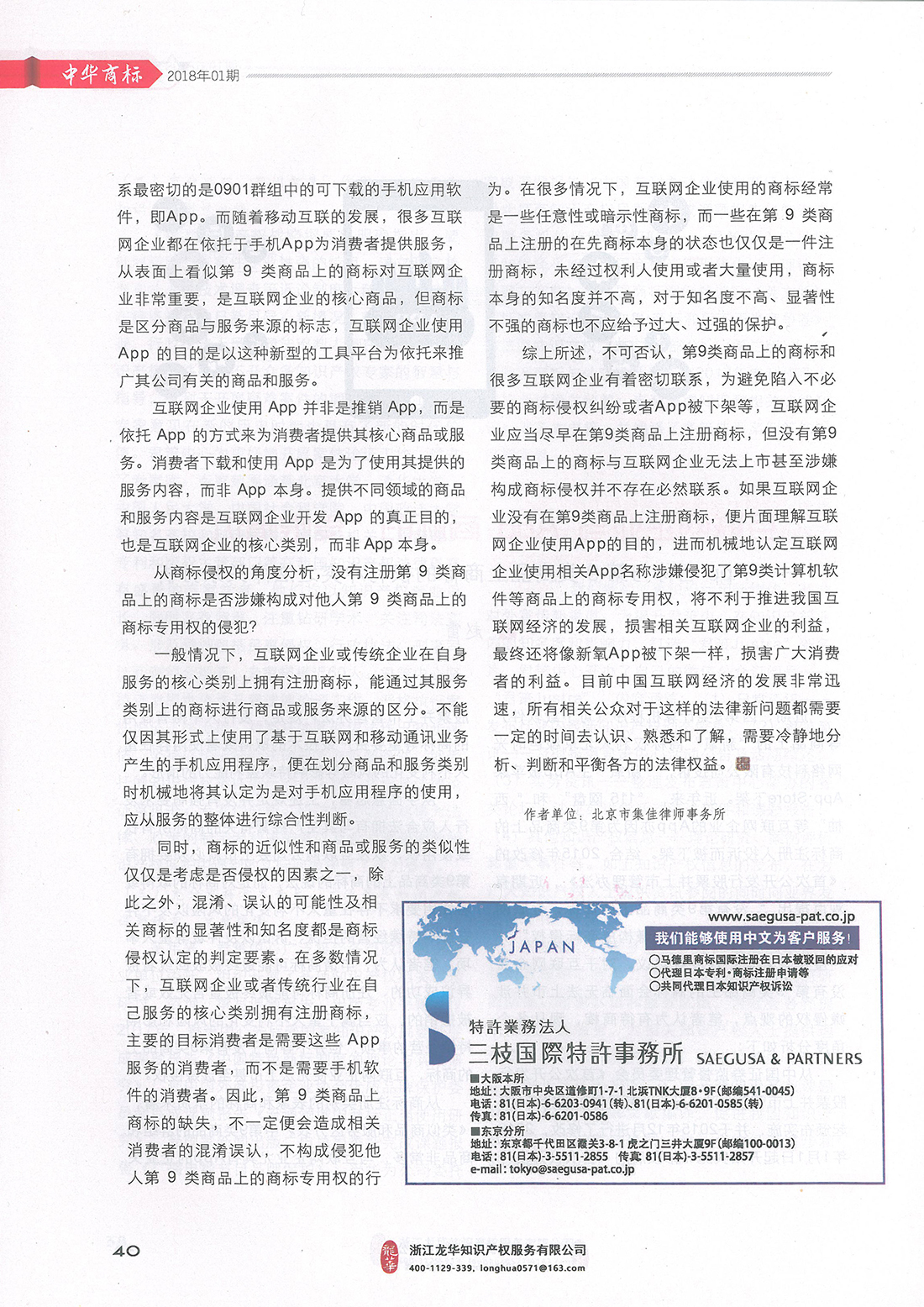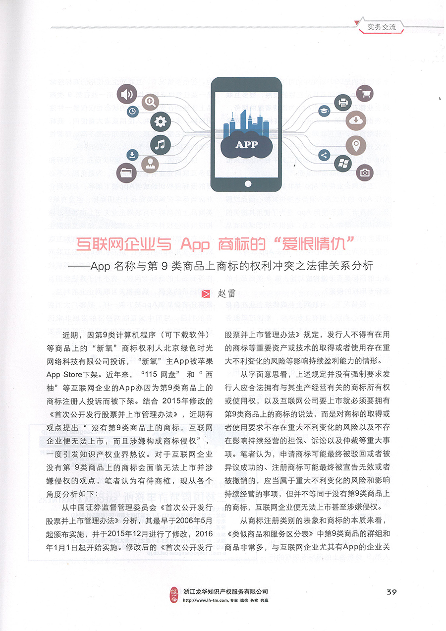 集佳文章《互聯(lián)網(wǎng)企業(yè)與APP商標(biāo)的“愛恨情仇”》在《中華商標(biāo)》發(fā)表