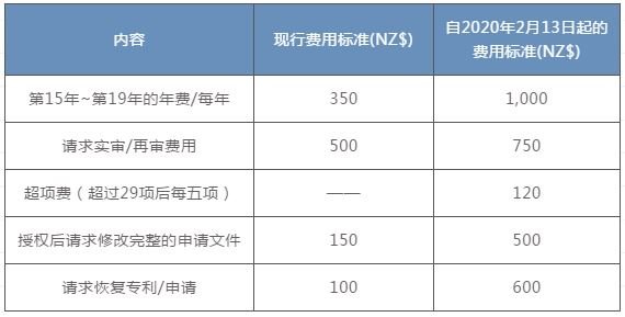 自2020年2月13日起,新西蘭將執(zhí)行新的官費(fèi)標(biāo)準(zhǔn),較為重要的費(fèi)用調(diào)整包括:(1)引入超項費(fèi);(2)審查費(fèi)用增加;(3)大大調(diào)高了維持費(fèi)和續(xù)展費(fèi),尤其從第15年開始,詳見下表: