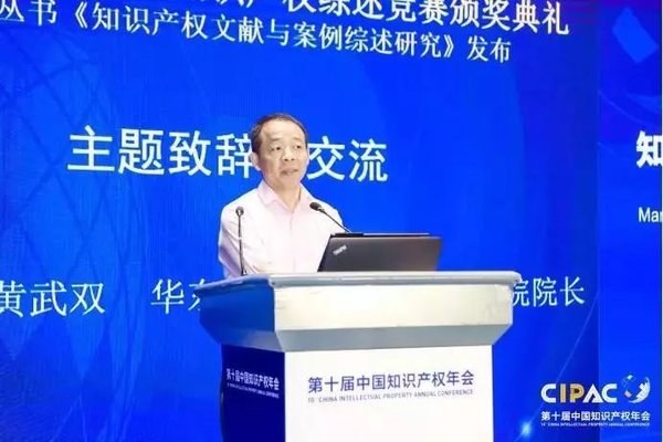 ▲華東政法大學(xué)知識(shí)產(chǎn)權(quán)學(xué)院黃武雙院長致辭