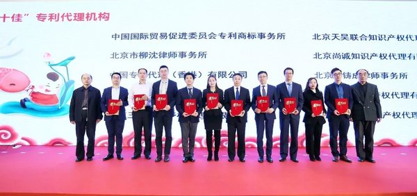 ▲集佳合伙人王艷江副所長(右六)領取“十佳專利代理機構”榮譽證書