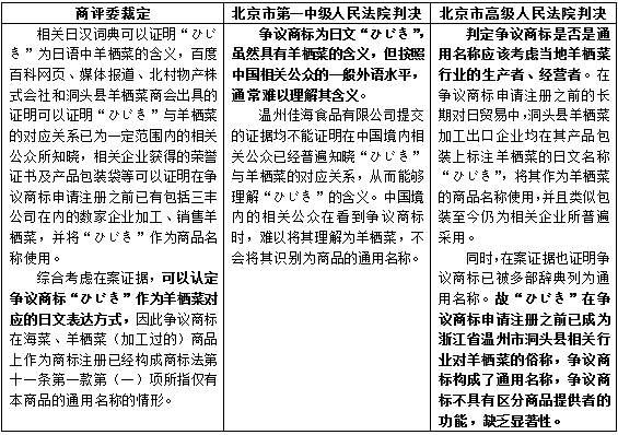 在上述案件中,北京市高級人民法院從商標(biāo)的實際使用情況出發(fā),考慮到羊棲菜作為中國特定地區(qū)主要供出口日本的產(chǎn)品,其養(yǎng)殖、加工、銷售出口涉及中國境內(nèi)的市場區(qū)域系以浙江省溫州市洞頭縣為主的特定地域范圍,相關(guān)市場較為固定,商標(biāo)的“相關(guān)公眾”并不是中國一般的消費者,而主要應(yīng)指上述區(qū)域內(nèi)的羊棲菜加工出口企業(yè)。為避免某個生產(chǎn)者對于商品通用名稱通過商標(biāo)注冊獲得壟斷利益,從而撤銷日文商標(biāo)“ひじき”在關(guān)聯(lián)商品上的注冊。