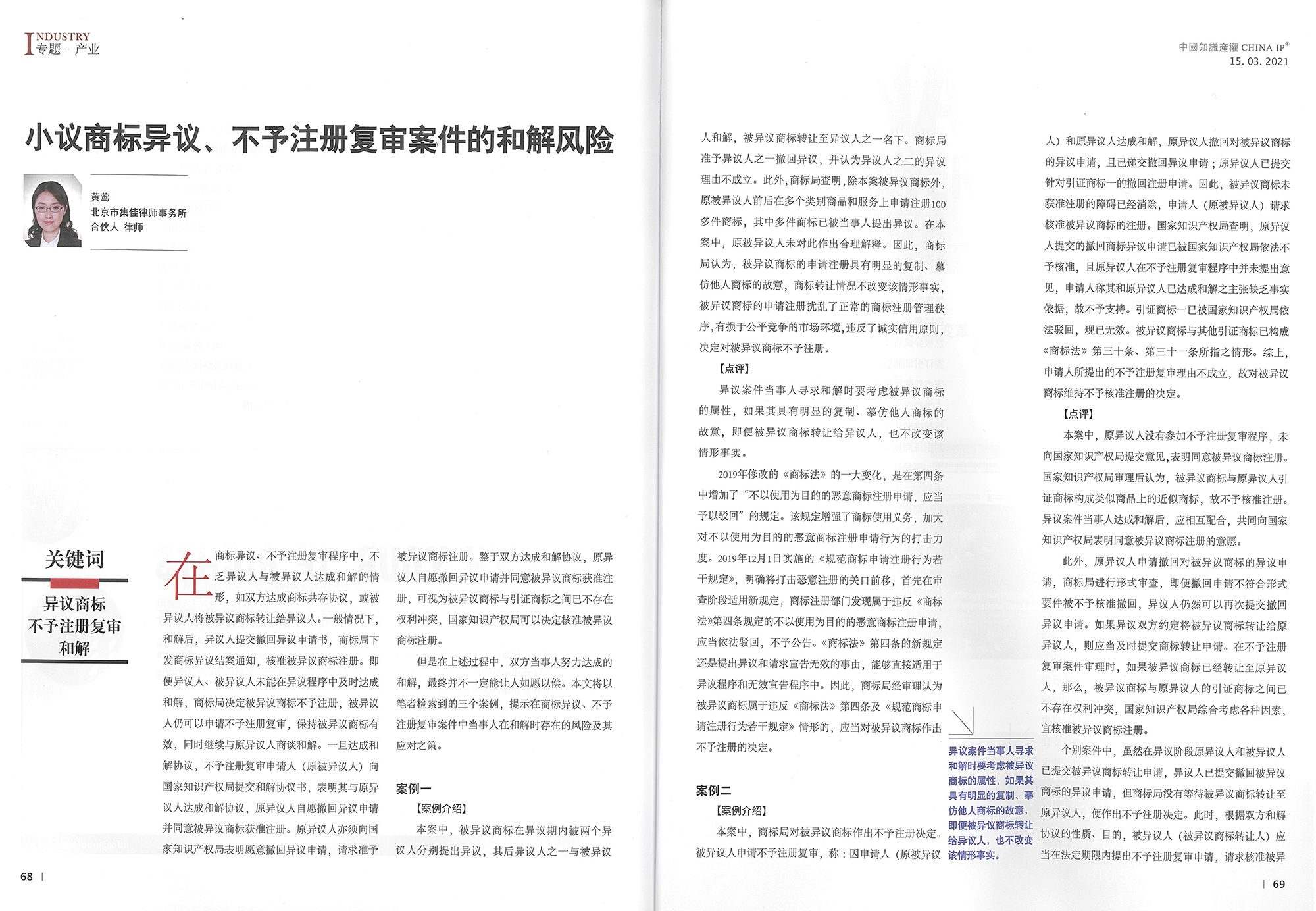 集佳文章《小議商標(biāo)異議、不予注冊(cè)復(fù)審案件的和解風(fēng)險(xiǎn)》在《中國知識(shí)產(chǎn)權(quán)》發(fā)表