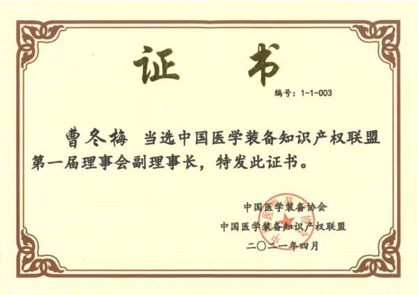 2021年4月10日,中國醫(yī)學(xué)裝備知識產(chǎn)權(quán)聯(lián)盟(以下簡稱“聯(lián)盟”)成立會暨中國醫(yī)學(xué)裝備知識產(chǎn)權(quán)發(fā)展論壇在北京成功召開。國家衛(wèi)生健康委、工業(yè)和信息化部、國家知識產(chǎn)權(quán)局、中國醫(yī)學(xué)裝備協(xié)會、聯(lián)盟發(fā)起單位及醫(yī)療機構(gòu)、企業(yè)、金融等機構(gòu)的180余名代表出席此次大會。北京集佳知識產(chǎn)權(quán)代理有限公司受邀成為聯(lián)盟第一屆理事會副理事長單位,集佳知識產(chǎn)權(quán)顧問曹冬梅當選聯(lián)盟第一屆理事會副理事長。
