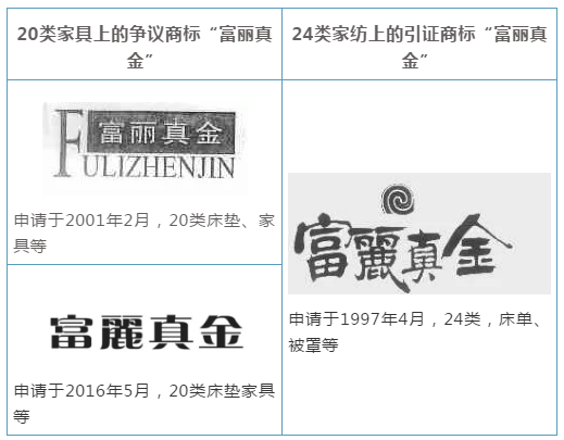 隨后,富麗真金家紡先后對(duì)富麗真金家具兩枚注冊(cè)商標(biāo),提起無效宣告。